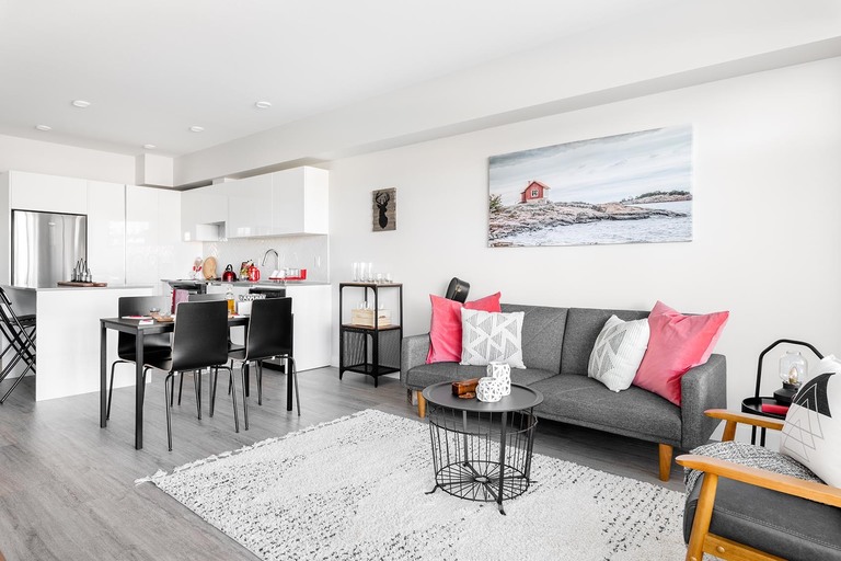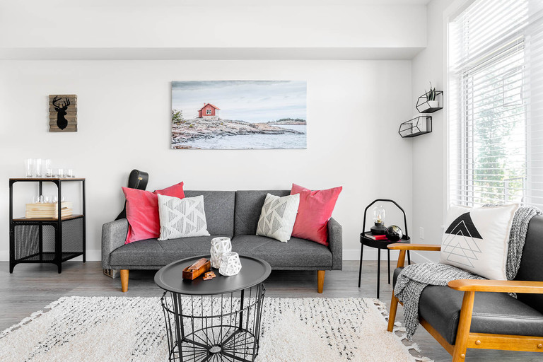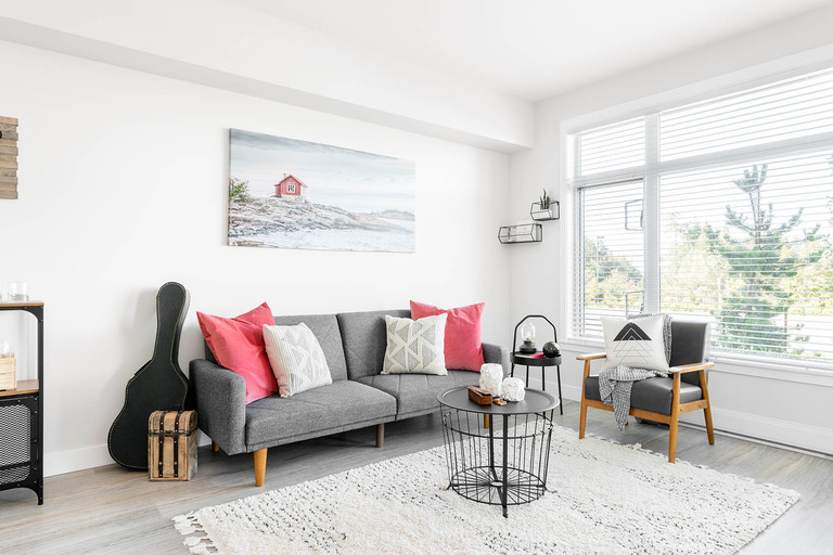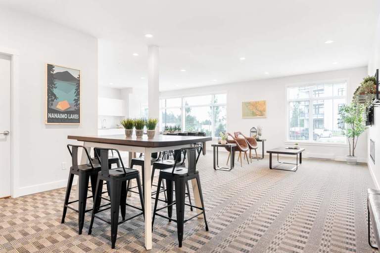 Nestled between the forest's edge and the island's most vibrant retail centre, Woodgrove Centre, North Point offers unmatched value and lifestyle in Nanaimo. This sophisticated collection of studio, one, one + den, and two-bedroom rental apartments has everything you need – beautifully crafted Italian kitchens with modern appliances, in-suite laundry, and peek-a-boo ocean views. Open-concept floorplans at North Point feature stylish wide-plank vinyl flooring in a warm oak tone throughout suites, and soft wool-blend carpets in bedrooms. Nine-foot-high ceilings and expansive windows allow natural sunlight from the southern exposure to pour in and create an abundant sense of space. Each apartment includes a roomy patio or balcony, where you can enjoy the fresh island air and breathtaking scenery. Premium details are what make North Point a refined, refreshing take on rental living in Nanaimo.