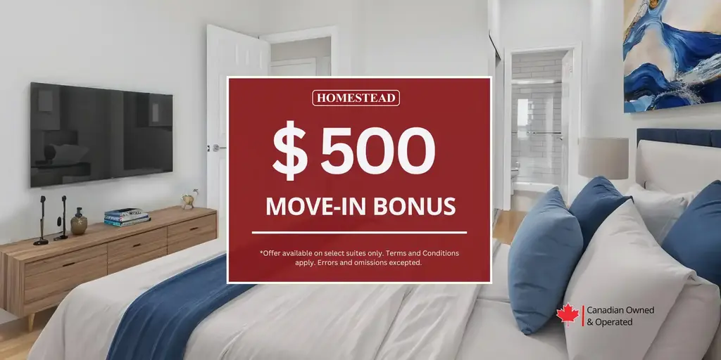 $500 Move-In Bonus!Rent one of our select suites and receive a $500 Move-In bonus!**Select suites only. Based on availability. Errors & omissions excepted. Not valid with any other offer or promotion. Subject to change without notice. Discount applies to the base rent of the suite only and does not apply to any additional items or services such as parking, storage, etc. Offer valid for new applicants only. Transfers are not eligible.Embrace the charm of old downtown Kitchener at The Regency, located at 57 Queen Street North. This elegant residence offers a distinctive living experience, blending sophistication with comfort.Experience the luxury of abundant amenities in our spacious, condo-style suites. Each suite is thoughtfully designed and comes equipped with five appliances, including convenient ensuite laundry facilities.Stay active and fit in our well-equipped fitness room, available exclusively for our residents.Conveniently positioned at the intersection of Queen and Weber, The Regency offers unparalleled access to City Hall, Market Square, and the serene Victoria Park, all within walking distance. Plus, with public transit just steps away, exploring the vibrant corners of Kitchener has never been easier.Managed to Homestead's high standards, The Regency is overseen by a dedicated team of professionals committed to ensuring your comfort and satisfaction. Experience the epitome of elegant living at The Regency in Kitchener.ElevatorsFitness roomFridgeStoveDishwasher availableBalconiesAir ConditioningPre-Authorized Payment OptionsDedicated On-Site StaffPet FriendlyCable readyMicrowaveInternet readyNo Smoking allowedOnline Payment AvailableIn-Suite LaundryUltra Fast Fibre Internet AvailableElectric Vehicle Charging StationUnderground Parking