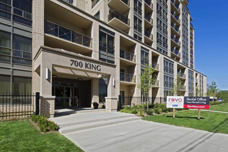 Building InformationNew upscale rental living.Revo is premium rental living –  Apartments are infused with a contemporary edge. Laminate flooring in the living room, dining room and den are complemented by ceramics in the bath and kitchen and plush broadloom in the bedrooms. Individually controlled heating and air conditioning is also included. These one, two, and three-bedroom rentals offer great layouts and are thoughtfully designed to maximize square footage while still offering plenty of storage space. The larger suites even offer master ensuites and walk-in closets!NeighbourhoodFrom everyday conveniences to green spaces, funky coffee houses to eclectic eating places, and London Transit to Western University and Fanshawe College, both within 10 minutes, REVO is ideally situated on King and Hewitt, putting the things you want practically outside your door. Walking distance to The Western Fair District and BMO Centre, home to London's best concerts, the London Knights other sporting event and fairs.