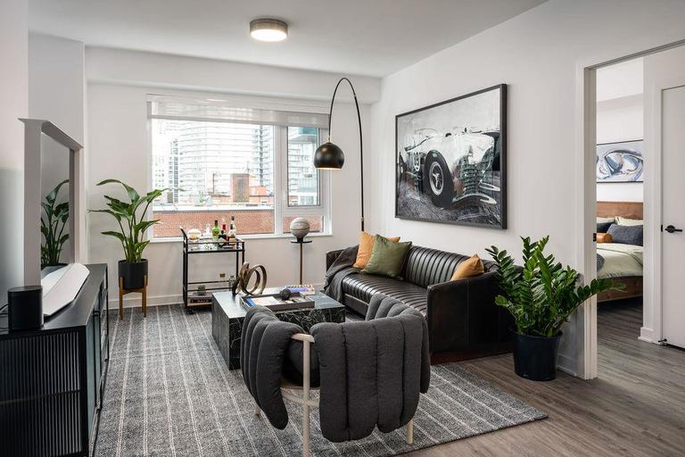Move-in Incentive on select suites – Limited Time Offer *Terms and conditions – application must be submitted within 48 hours of initial tour. Renting One, Two and Three Bedroom Suites - Move in today.Sophistication in Rental Living.Welcome to The Residences At The Well. Located at The Well, Toronto's largest master-planned downtown community, the two exclusive buildings of 171 and 160 suites each overlook the revitalized Wellington Street Promenade. Each of the one, two and three-bedroom spacious, luxury suites is lavishly designed to complement your accomplishments. State of- the-art building amenities present opportunities to foster your physical and mental well-being, complemented by The Well's curated dining and retail experience, and modern workspaces. Discover comfort and style in an ambitious community centred around your needs.It's the perfect home base for exploring King West and the nearby Theatre District. Some of the city's top entertainment and sporting venues are just a short walk or streetcar ride away. From live theatre to top Hollywood blockbusters; baseball, hockey and basketball games; and live performances of all types of music, you're in the best place in Canada to enjoy it all — the ultimate downtown lifestyle.As a complement to your achievements, a host of upscale amenities make it easy for you to live the carefree, wellness-focused lifestyle you deserve. The Residences at The Well feature exclusive amenities designed to enhance your life — for relaxation, social connection, fitness and well-being.Pricing and floor plans subject to change based on real-time availability. For all floorplans and pricing visit www.TheWellResidences.ca or contact us for more details. Renderings are artist's concept. E.&O.E.*Terms and conditions applyOffice HoursMonday – Friday 10AM – 7PMSaturday – Sunday 10AM  - 5PMProfessional property management and resident services by Rhapsody Property Management ServicesCommunity AmenitiesRooftop Fitness Centre Yoga StudioMassage RoomsParty RoomMedia LoungeOutdoor Terrace (Outdoor terrace with BBQ, dining, and lounge areas)Dining Room & LoungeSmart parcel management lockers100% smoke-free building for easy breathingPet-friendly communityUnderground parkingUnderground bike storageConcierge & after-hours securityKeyless access controlProfessionally managed by Rhapsody Property ManagementOn-site maintenanceResident PortalAmenity Booking SystemOnline Rent Payment System​General Suite FeaturesOffering 1, 2 and 3 bedroom suitesIn-suite washer and dryer2 Colour palette optionsBalconies and Terraces*9' smooth ceilingsSmart thermostatVinyl plank flooringSun shades in all main living areasBlack-out shades in all bedroomsBack-painted glass closet sliders with wire closet organizersKitchen FeaturesQuartz countertops with under-mount sink4-piece stainless steel KitchenAid appliancesKitchen Islands*Two colour palette options for cabinetsPersonal wine fridge*Bathroom FeaturesCustom-designed vanity Porcelain tile walls. floors and backsplashTwo colour palette options for cabinets*Select suites