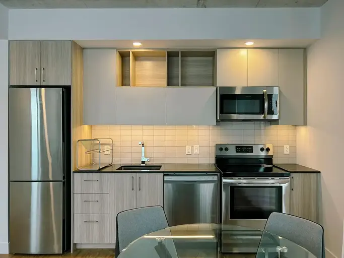 • Full size stainless steel appliances