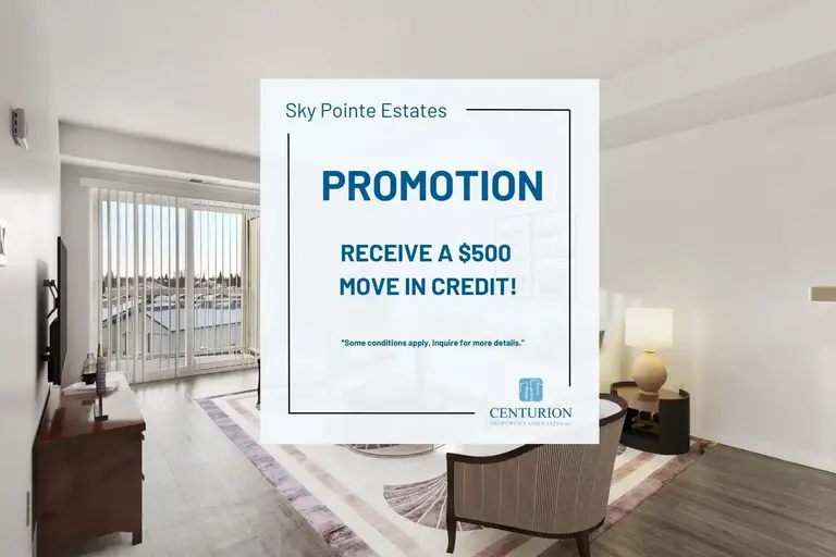 -------------AboutLocated on Little Pine Loop, this beautiful low-rise property offers one and two-bedroom apartments. Sky Pointe Estates is a single-building complex in the Skyview neighborhood of Northwest Regina. Residents will enjoy a family-friendly modern lifestyle close to parks, playgrounds, restaurants, stores, services, and future schools.PROMOTION: Receive $500 move-in credit!*Some conditions apply, please inquire for more details*Looking for a future move-in date? Give us a call today to speak with one of our Customer Care Representatives to find out more!Suite offers: Central heating and air conditioningFull-sized appliances, including dishwasher and microwaveIn-suite laundryTile floors in kitchens and bathrooms Private balconies in each unit for an extended living spaceProperty offers:EV parkingYour community offers:Easy access to Louis Riel Trail and CanAm Highway Short drive to  shopping centreShort distance to schools and parksFees:*Security Deposit - $499*Hydro & Gas not included*Outdoor Parking: $60/month for extra spot *Rent includes one electrified parking stall. *Please note this property is not pet-friendlySuite images shown represent standard unit finishes, which may differ between units. Suite layout varies.Utilities IncludedWater