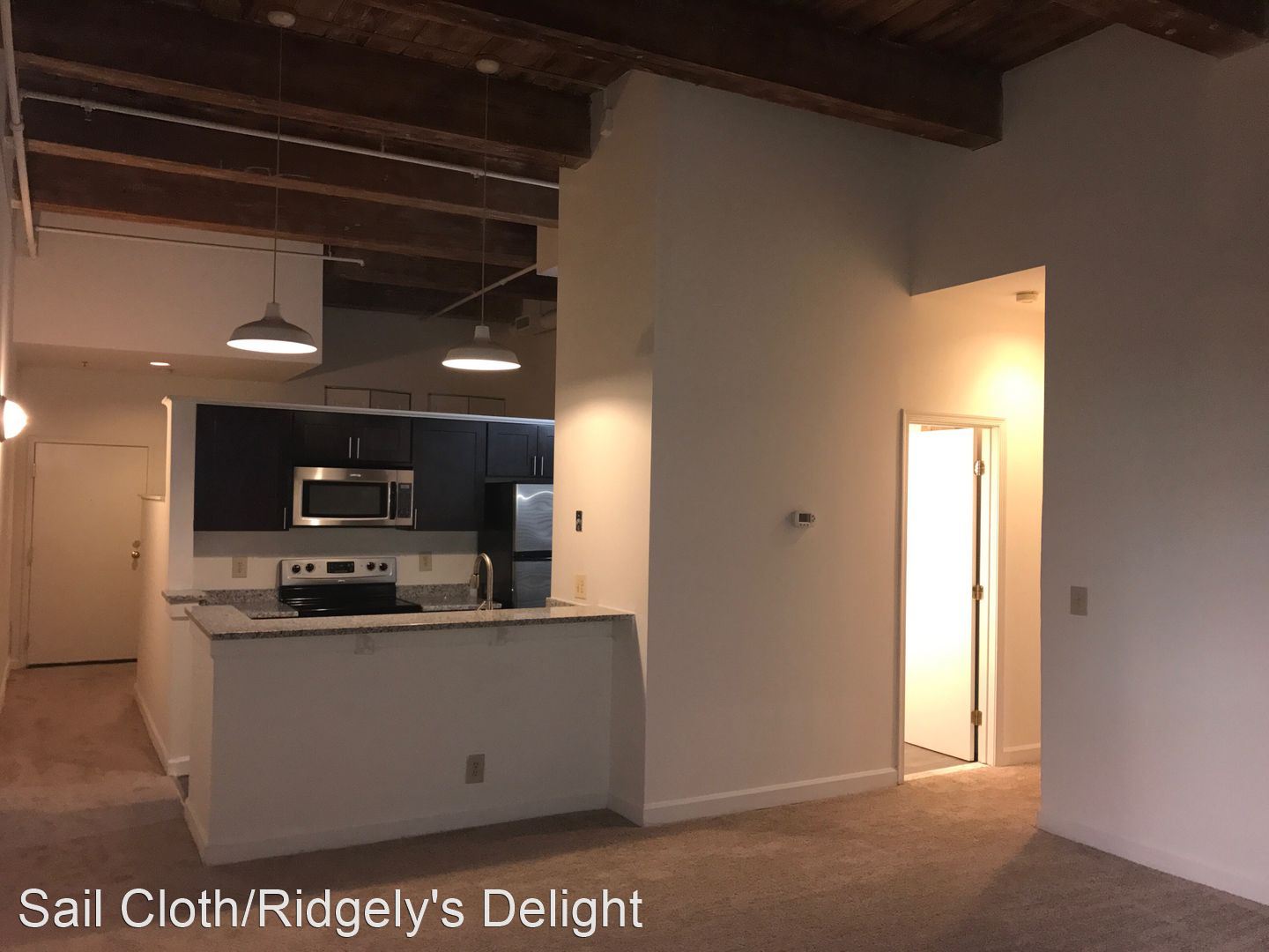 Now available at the Sail Cloth Factory, our famous 1 bedroom + den floorplan! This particular floorplan is in short supply, and very high demand, and will not be on the market long. Offers high ceilings, large windows, exposed brick accent walls, exposed wood beams that are original to the building, a ton of closet space, and a brand new kitchen and bathroom, just recently renovated to include soft-close espresso cabinetry, gorgeous granite countertops, stainless steel appliances, upgraded lighting and flooring, and washer/dryer in unit. Once in a lifetime apartment, that perfectly blends the history and charm of Baltimore, with modern and luxurious high end finishes.