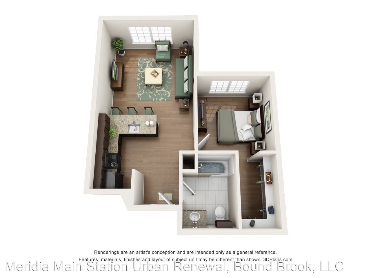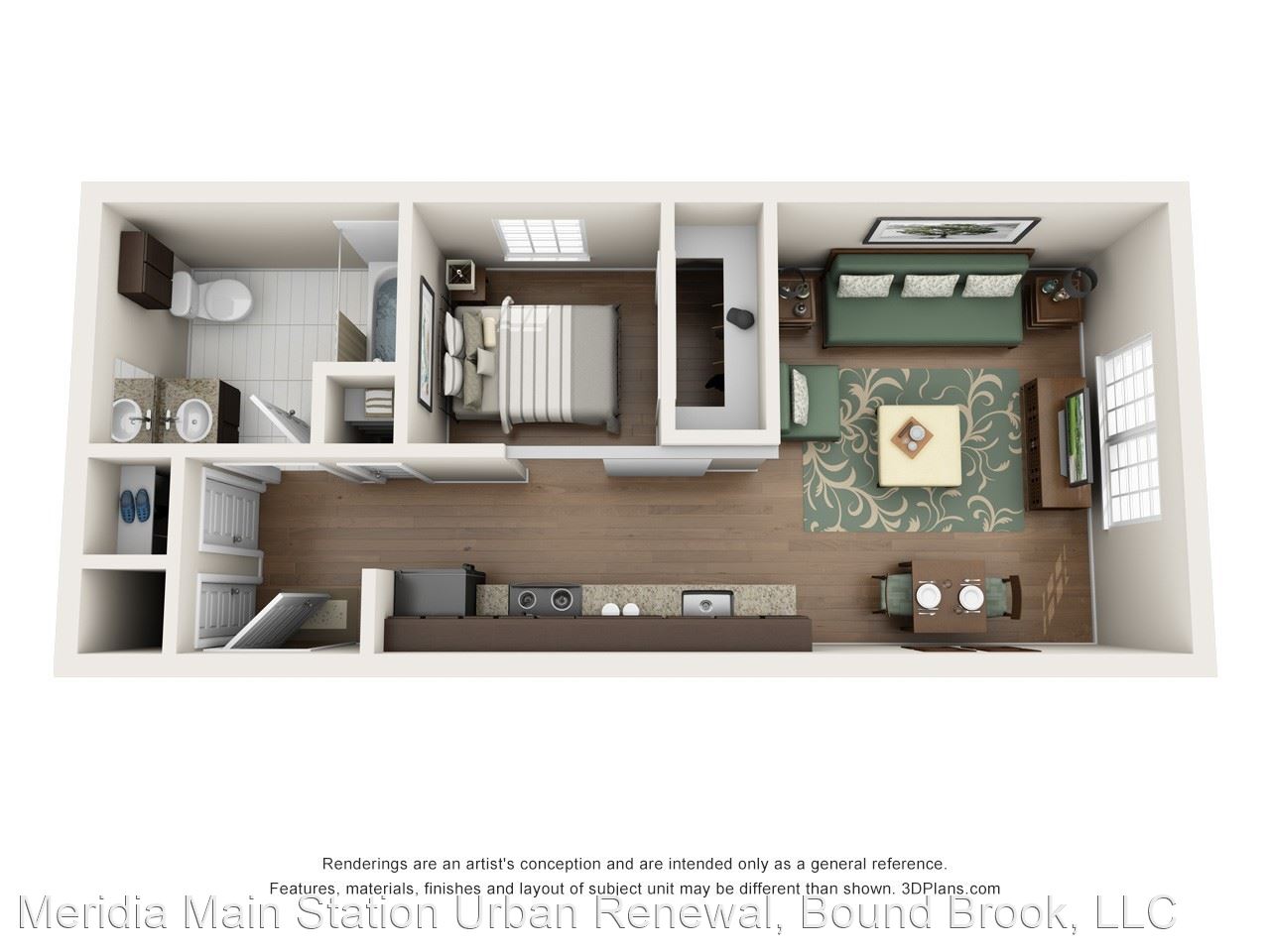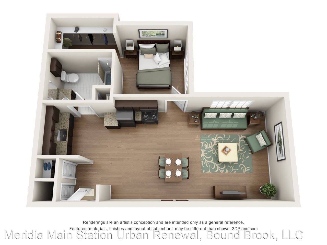 Loft - Your daily commute from Meridia Main Station is one you don’t have to stress about. The Bound Brook Station is only 0.2 miles away for your living convenience in between I-287 and U.S. 22. Known for its many graduate programs, Rutgers University is seven miles away so you can easily explore educational pursuits and a beautiful campus. Home of the Scarlet Knights, cheer on Rutgers’ football team at HighPoint Stadium across from Johnson Park. Apartments In Bound Brook NJ At Meridia Main Station, live the life of luxury in any one of our one or two bedroom apartment homes. With up to 851 square feet, enjoy spacious living right in the city. At the corner of Bound Brook, Green Brook and Raritan River, enjoy breathtaking views through expansive windows and your very own eye-catching balcony. Feel right at home the moment you walk on rich hardwood flooring throughout with beautiful modern detail. Premium kitchen packages feature generous granite countertops and superior appliances for your living convenience.