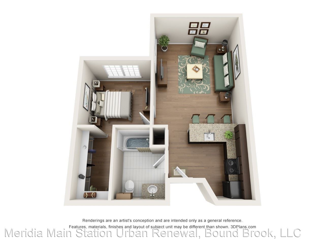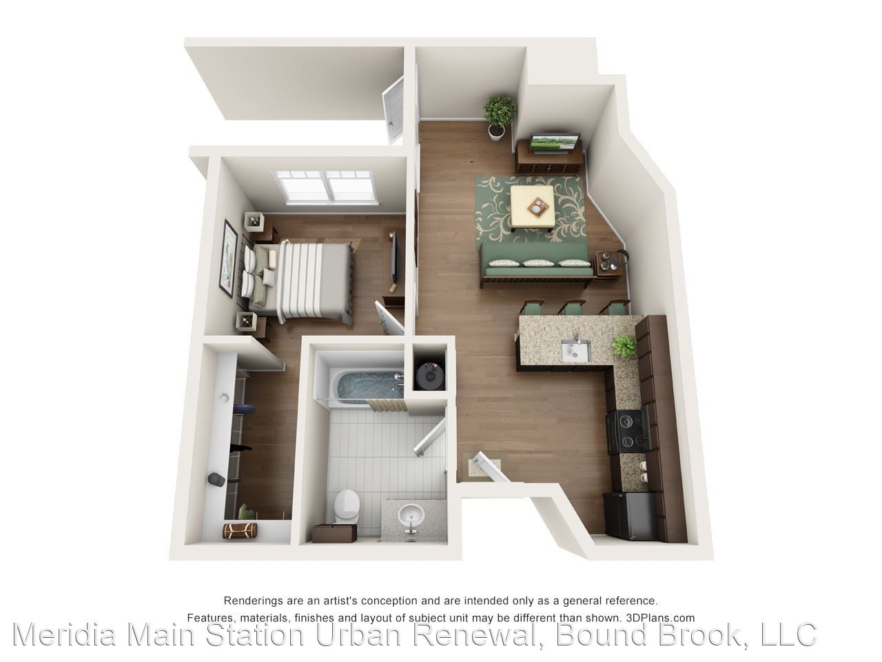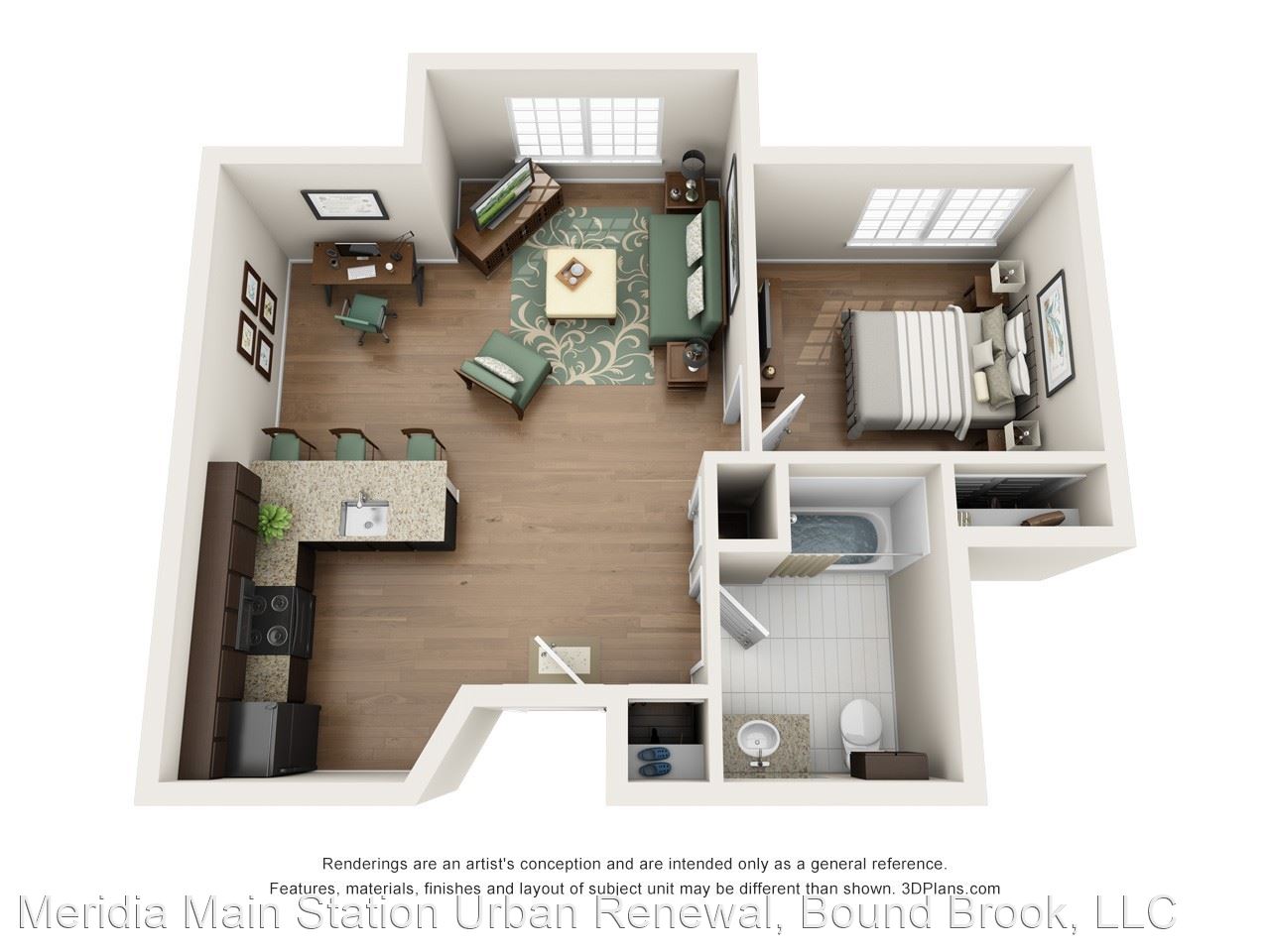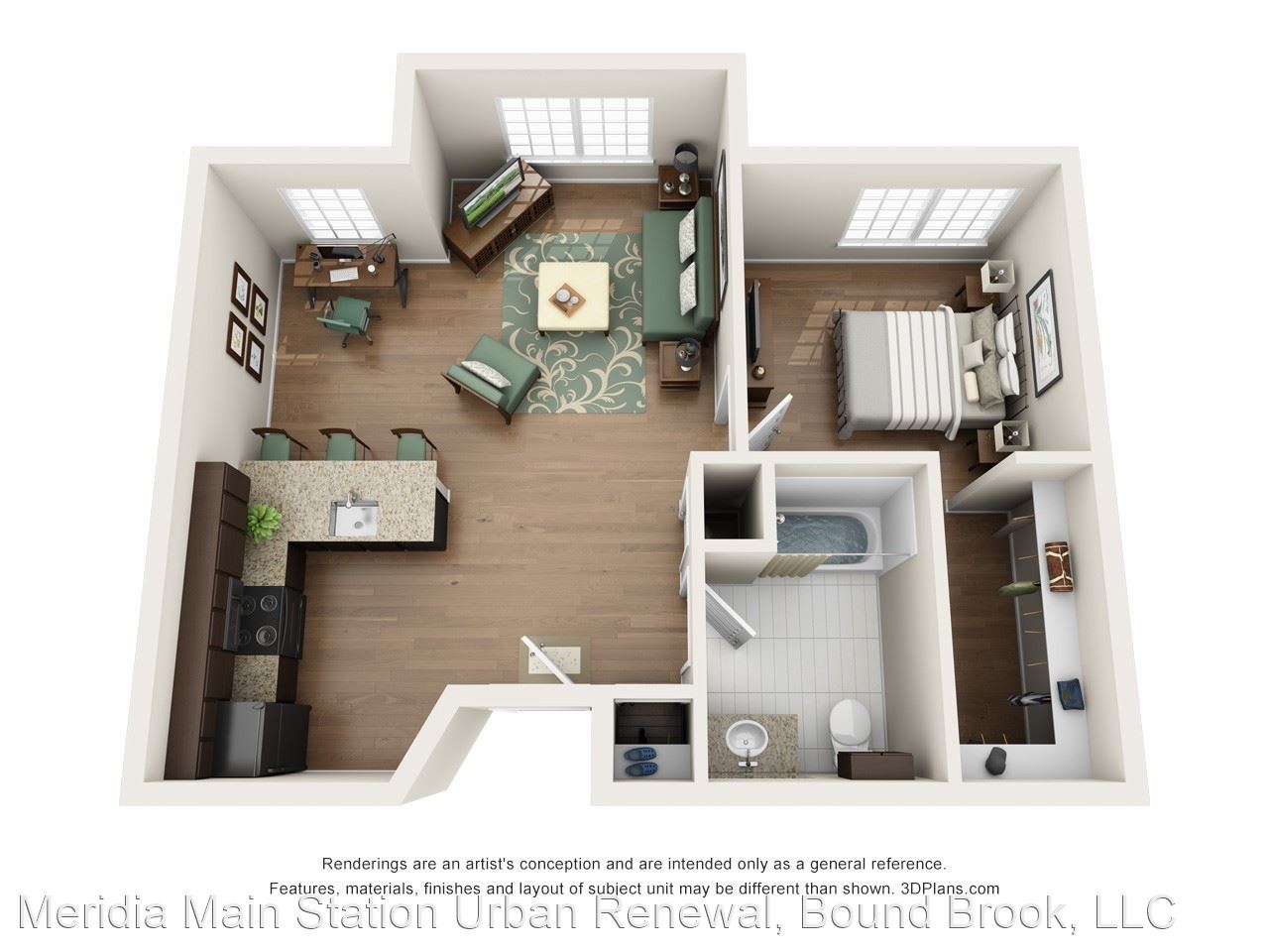 Loft - Your daily commute from Meridia Main Station is one you don’t have to stress about. The Bound Brook Station is only 0.2 miles away for your living convenience in between I-287 and U.S. 22. Known for its many graduate programs, Rutgers University is seven miles away so you can easily explore educational pursuits and a beautiful campus. Home of the Scarlet Knights, cheer on Rutgers’ football team at HighPoint Stadium across from Johnson Park. Apartments In Bound Brook NJ At Meridia Main Station, live the life of luxury in any one of our one or two bedroom apartment homes. With up to 851 square feet, enjoy spacious living right in the city. At the corner of Bound Brook, Green Brook and Raritan River, enjoy breathtaking views through expansive windows and your very own eye-catching balcony. Feel right at home the moment you walk on rich hardwood flooring throughout with beautiful modern detail. Premium kitchen packages feature generous granite countertops and superior appliances for your living convenience.