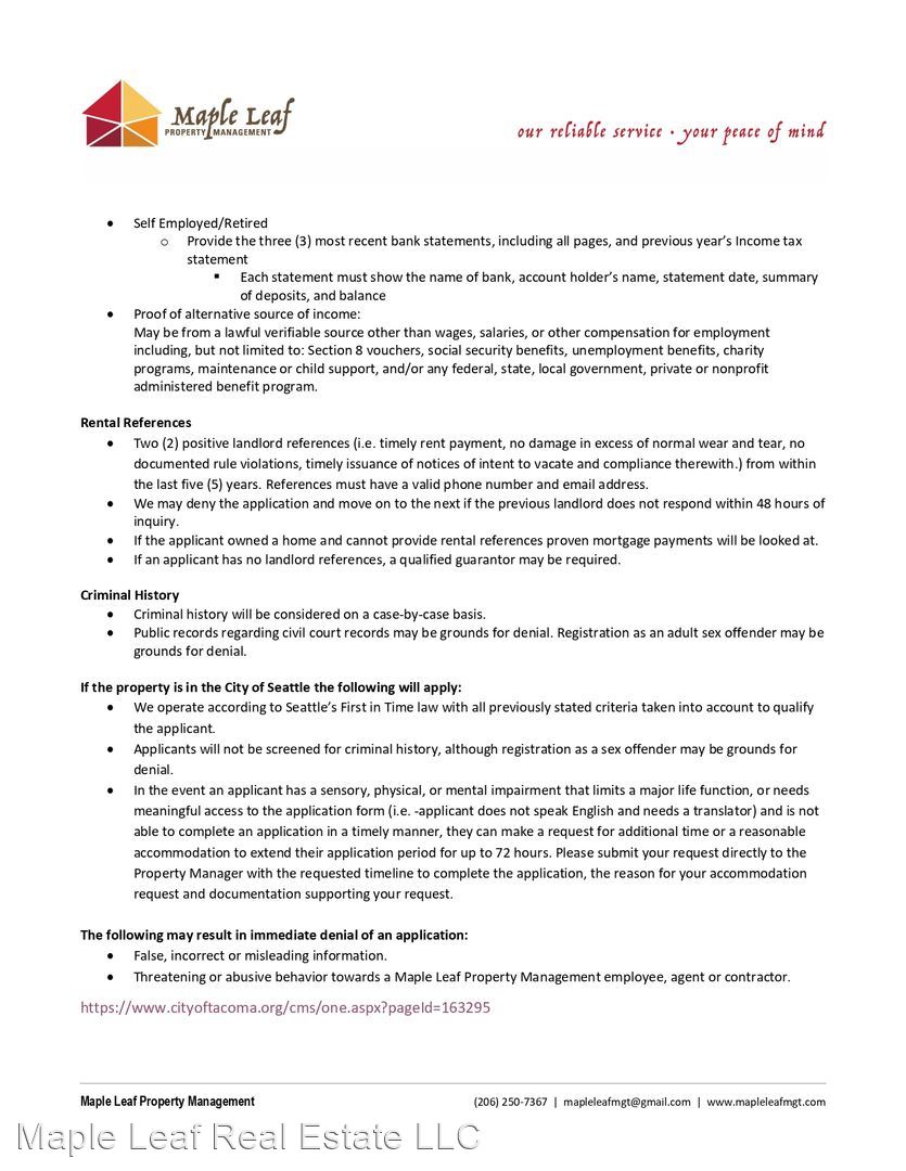 Upscale Living at the Braeburn! - One Bedroom-One Bath. - Welcome to the Braeburn! Unbeatable Capitol Hill location with Walk Score of 98 - restaurants, Central Coop, Trader Joes, Whole Foods, clubs and bars, bus routes, and light rail are just minutes away. Well maintained, open concept bedroom, interior courtyard unit with small balcony. In-unit washer/dryer. Stainless steel kitchen appliances. Secured parking garage. Many great amenities - rooftop decks with view of City, BBQ grills, well equipped fitness center, yoga studio, p-patch community garden, dog run, courtyards, 14 seat theater, woodwork shop, lounge, and more. Well-run HOA with no rental cap. APPLICATION: -Showings by appointment only. To schedule a viewing, select the “contact us” or “request a tour” icon to submit your information and an agent will reach out to you. FaceTime tours available. -All emails/calls/texts will be considered pre-screening of potential tenants. -$55.00 Application Fee per applicant over the age of 18. - $35 a month Resident Benefit Package available -No application(s) accepted until the potential tenant(s) have toured the property by appointment only with a Maple Leaf Management LLC or Showdigs agent. Masks and social distancing required. MOVE-IN COST: -Security deposit and last month's rent required, and both can be paid over six months. LEASE: Lease term is 12 months minimum -All rentals are strictly non-smoking PETS: Pet(s) considered on a case by case basis. Pet rent and screening via petscreening.com required. UTILITIES: $75 per month for water/sewer/garbage. Tenant set up their own electrical account with Seattle City Light PARKING: one spot in secured garage $150 View our Rental Criteria and Application Disclosure at http://mapleleafmgt.com